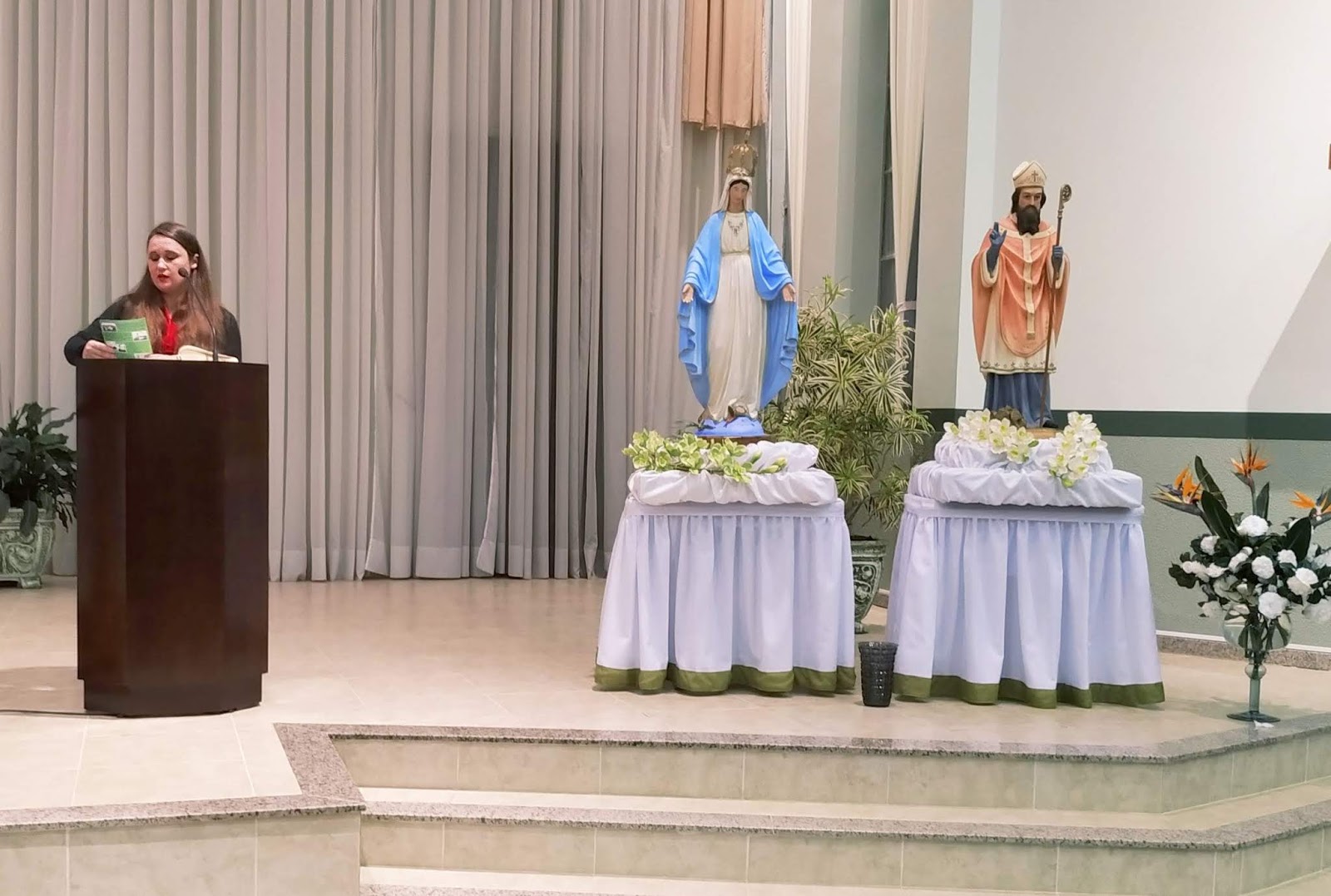 presidida pelo vigário paroquial Gustavo Predebon e animada pelo Coral Madonna